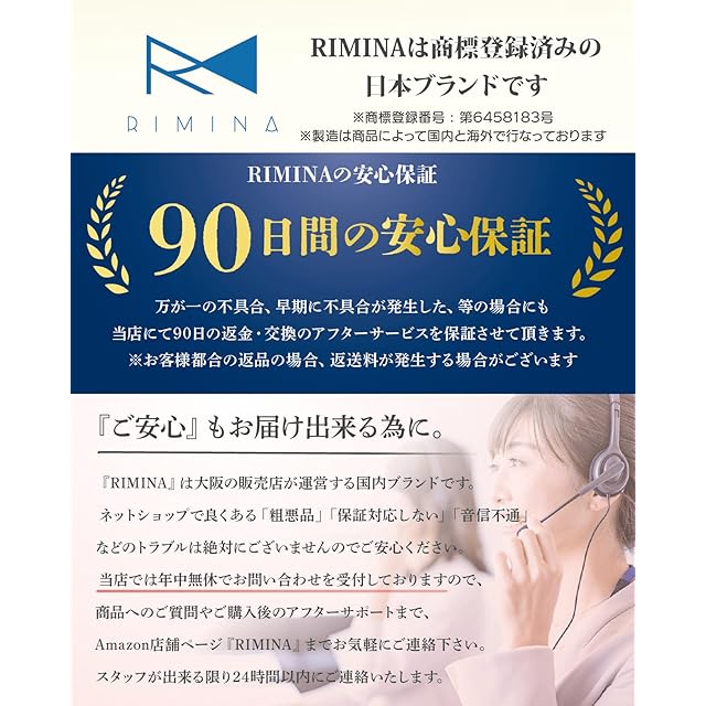 ◆安心の日本販売店 / RIMINA(商標)ブランドの製品は、大阪府枚方市で運営を行っているネットショップの株式会社RIMINAが責任を持って販売いたしております。 海外の販売店と違い、日本人担当者指示による検品体制を取っており、90日の延長も行なっております。万が一の不良等があった場合にも、 しっかりとやアフターサポートをさせて頂きますので、安心してご購入下さい。