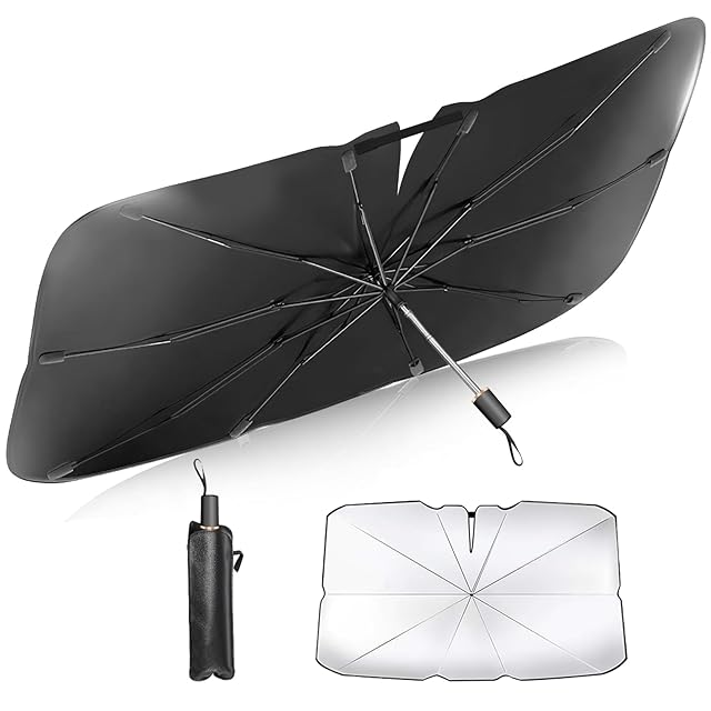 サンシェード 車 フロント 傘型 折り畳み式 遮熱 遮光 UVカット 紫外線遮蔽 車中泊 仮眠 車用パラソル 取付簡単