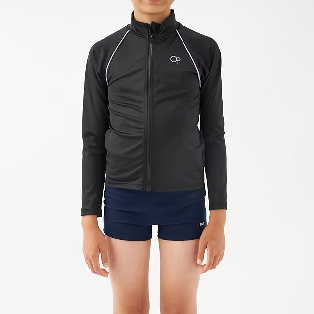 商品名:[オーシャンパシフィック] スクール水着 フルジップ ラッシュガード 長袖 112991 キッズ ブラック×パープル 150