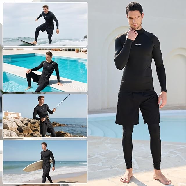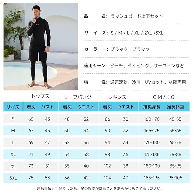 機能性に富んだセットアップ:ラッシュシャツ、サーフパンツ、ラッシュレギンスがセットになっており、水陸両用であらゆる水上アクティビティや日常のレジャーシーンに対応できます。プールでのスイミングから海でのサーフィン、そして陸上での運動まで、一つのセットで対応可能です。