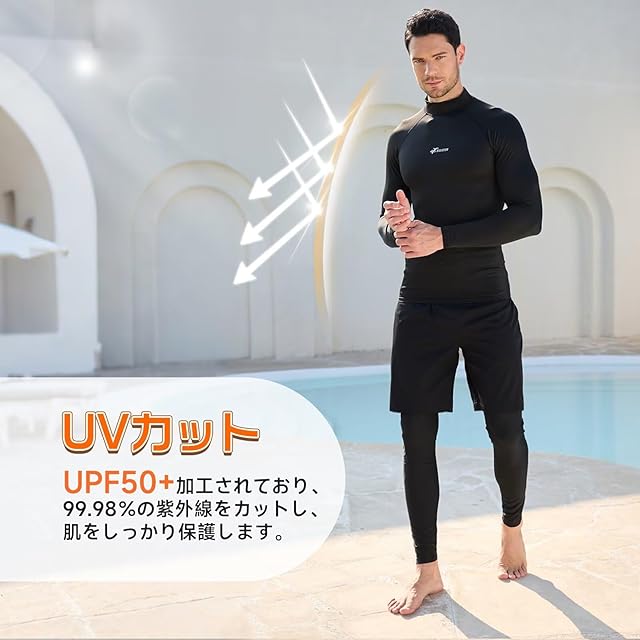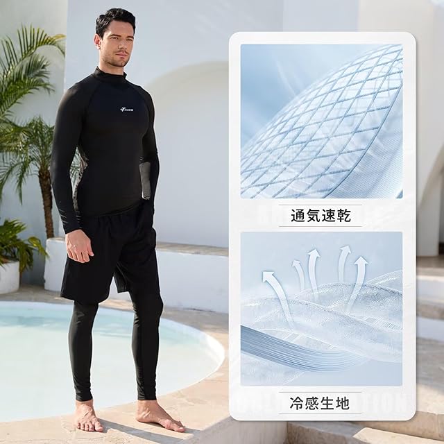 卓越した冷感・UV カット・通気速乾性能:特殊な冷感素材を用い、着るとすぐに涼しさを感じられます。高い UV カット機能で強い日差しから身体を守り、通気性と速乾性にも秀でているため、汗や海水に濡れてもすぐに乾燥し、快適な着心地を維持できます。