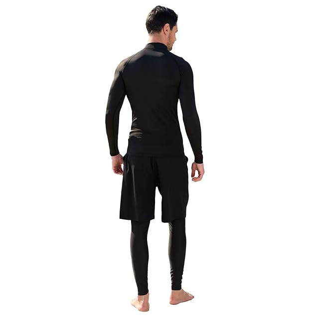 [Sillictor] ラッシュガード メンズ 水着 上下セット 長袖 ラッシュシャツ + サーフパンツ + ラッシュレギンス オーバーウェア セットアップ スイムウェア プール 海 水陸両用 UVカット 226blkblk+1119blkblk+555blkblk-M