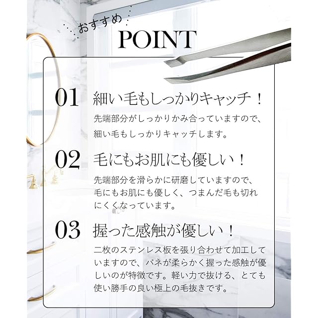 細かなうぶ毛も途中でちぎれることなく、スッと抜くことができる独自設計です。