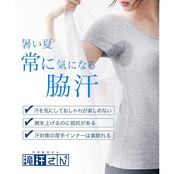 もう汗を気にしたくない方に向けた汗取りパッド付インナー。前側と後側の脇についた大きな汗取りパッドで汗を逃がさずキャッチ