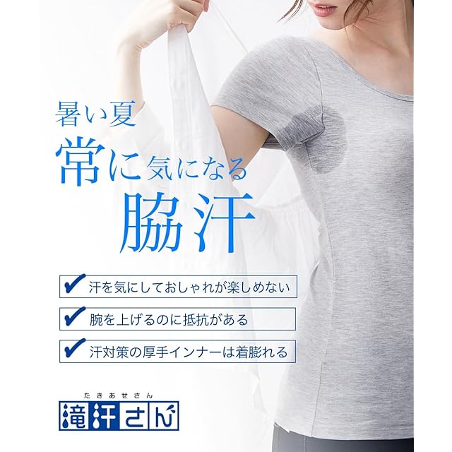 消臭効果と抗菌効果にすぐれたデオドランテープが付いてこの夏リニューアル。<br>大ヒットの滝汗さんシリーズのボレロタイプ。脇に特殊な2重構造の大きな汗取りパッドをつけ、汗やムレを吸収し、アウターに汗が染み出るのを防ぎます。接触冷感や吸汗速乾に優れ、着心地も快適。ボレロなので汗が気になる脇部分をしっかりガードします。※商品の色移りを防止するために個包装を行っている場合がございます。個包装はプラスティック削減のため一部の色のみに使用しています。