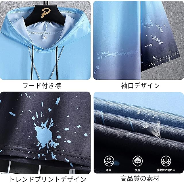 モダンでスタイリッシュなグラデーションデザインが特徴的な半袖パーカーです。白からブラックへのグラデーションに、アーティスティックなペイントスプラッシュ模様が施されており、独特な雰囲気を演出します。柔らかい素材を使用し、着心地の良さを追求しました。フードには調節可能な紐付きで、カジュアルなスタイリングが楽しめます。春から秋まで幅広い季節で活躍する一着です。シンプルなデザインながらも、個性的な柄使いで周りと差をつけることができます。ストリートファッションやカジュアルコーディネートにぴったりのアイテムです。デイリーユースはもちろん、アウトドアやレジャーシーンでも活躍します。サイドのスリットや適度なゆとりのあるシルエットで、快適な着用感を実現しました。