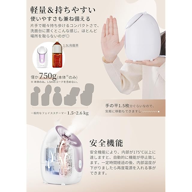 商品名:【美人百花微粒子化スチーマー美顔器部門NO1】ANLAN フェイススチーマー 美顔器 スチーマー 濃密ナノミスト 温熱ケア 美容 保湿 水道水OK 鏡 ノズル調節可能 コンパクト 毛穴ケアスチーマー 顔 髪 乾燥対策 PSE認証済み 誕生日 母の日