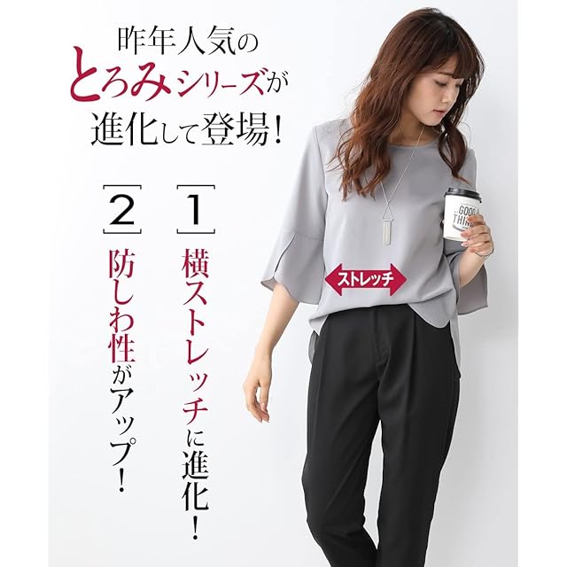 ★人気商品今年も登場!毎日通勤からライトオケージョンまで対応できる、大人めとろみ素材で叶える選べるセットアップ対応単品シリーズ・人気商品がバージョンアップして今年も登場!・落ち感のあるとろみ素材を使用しているので、身体のラインを拾いにくく華奢見え効果があるので、大人レディにオススメです。・お花の花びらのように優しく広がるフラワースリーブは、1枚で着映えするだけでなく、袖から覗く腕がほっそり見える嬉しい効果が◎・更に背中には上品フェミニンなタックを施し、身体に張り付かず程よいボリュームが今年らしくもあり体形<br><br>【M】:バスト:96、肩幅:38、袖丈:39、着丈:63<br>【L】:バスト:102、肩幅:39、袖丈:40、着丈:64<br>【LL】:バスト:109、肩幅:41、袖丈:41、着丈:65