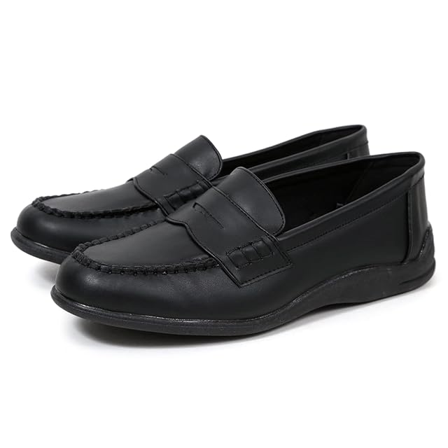 商品名:[アキリコ] ローファー やわらか フェイクレザー ワイズEEE フォーマル ローヒール ブラック 22.5cm