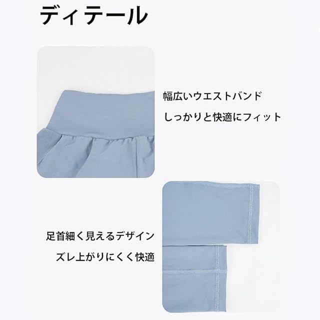 商品名:[Yomoment] 体型カバー レイヤード 2IN1 吸汗速乾 フィットネス レギンス ショート パンツ付き ランニング レディース トレーニング ストレッチ ピラティス ジム ウェア ヨガパンツ ヨガウェアライトスチール・ブルー:L