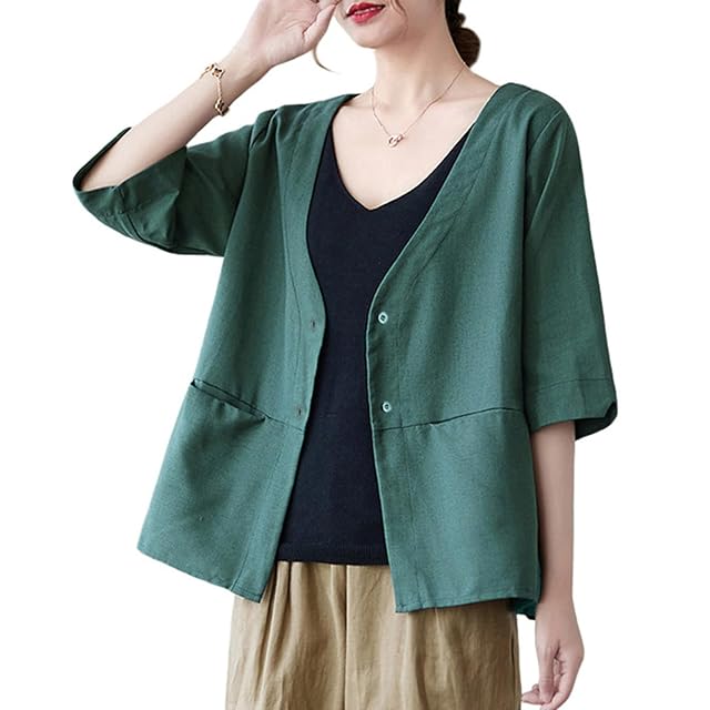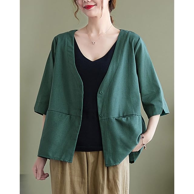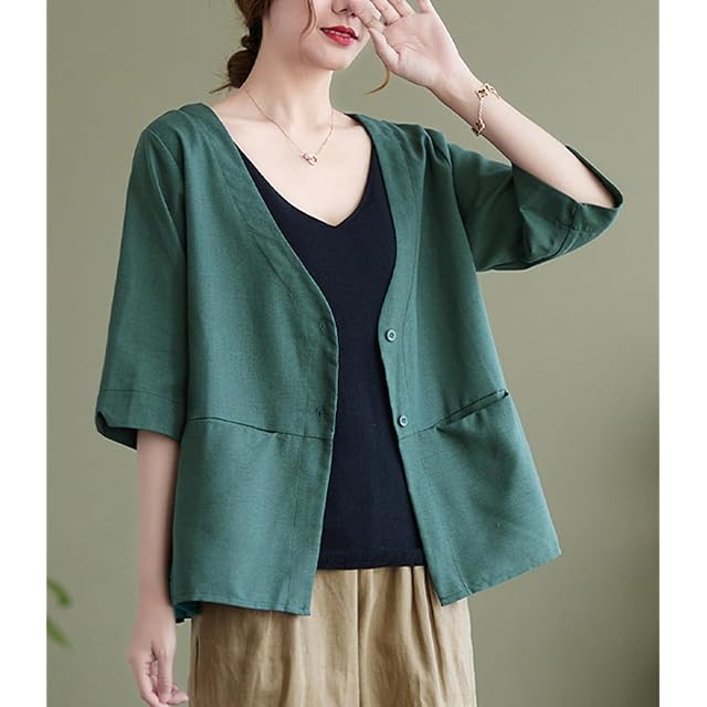 [EASTEMPO] カーディガン レディース 半袖 夏 オフィス ゆったり 七分袖 薄手 可愛い 大きいサイズ (JP, アルファベット, M, グリーン) | Trend Design BASE店
