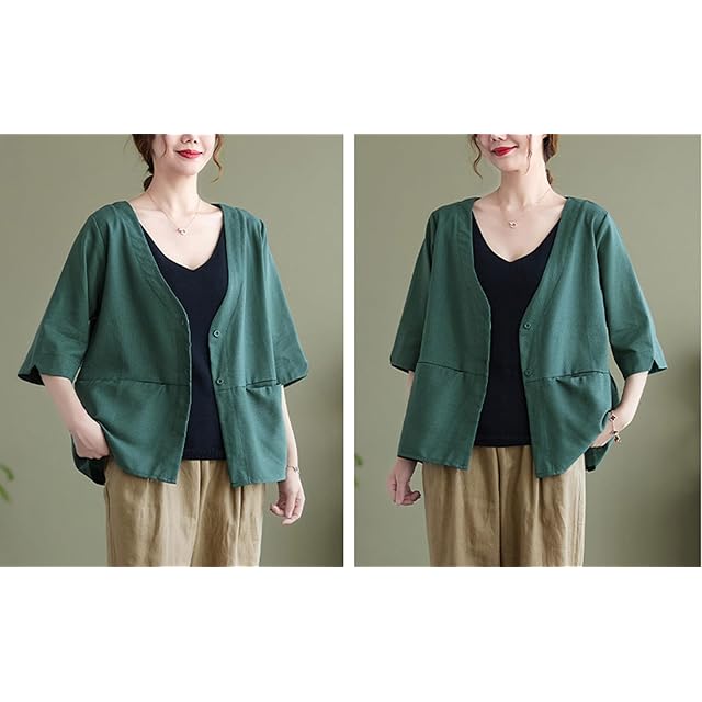 綿麻の混紡素材で仕立てた、ゆったりとしたレディース半袖カーディガンが登場です。通気性があり柔らかく、軽量で耐久性に優れており、夏でも快適に着用できます。 <br /> 季節の変わり目にぴったりの七分袖カーディガンです。袖口は広めに作られており、締め付け感や窮屈感がなく、リラックスした着心地です。カジュアルウェアでもオフィスウェアでも、簡単に使えます。 <br /> ネックラインを強調するVネックですっきりと見える薄手カーディガンです。蒸し暑い季節でも着心地が良く、エアコンの効いた環境でも着用いただけます。 <br /> 後ろのギャザーデザインと適度な丈感が特徴の可愛いカーディガンです。ショートパンツやスウェットパンツと合わせて着用すると、よりカジュアルな印象になります。 <br /> 弊社(EASTEMPO)が全部の商品は実物を撮影しますが、ご安心して買っていただきますようお願い申し上げます。購入した後、一ヶ月以内に、ご不満があった場合、返品・返金・交換に対応していただけます。 <br /> 「素材」:綿麻<br /> 「サイズ」:<br /> M:バスト100cm 着丈62cm 肩幅38cm 袖丈34cm<br /> L:バスト104cm 着丈63cm 肩幅39cm 袖丈35cm<br /> XL:バスト108cm 着丈64cm 肩幅40cm 袖丈36cm