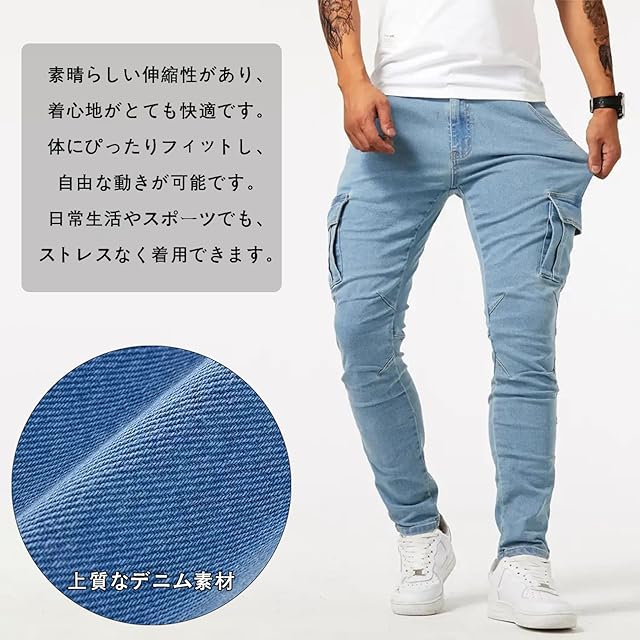 [Kayiyasu] デニムパンツ メンズ スキニージーンズ カーゴパンツ ストレッチ 大きいサイズ S-2XL ボタン付き コットン 春夏秋冬 カッコいい(L グレー) | Trend Design BASE店