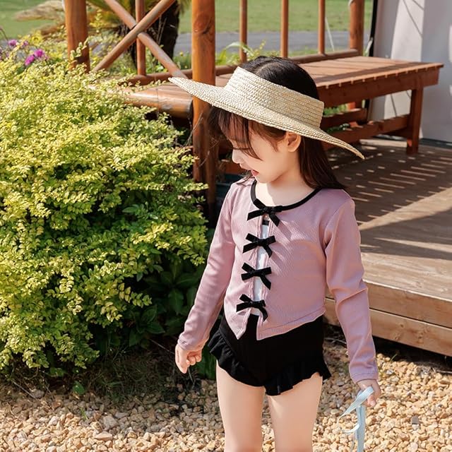 [Ymgot] キッズ 水着 女の子 オールインワン 女の子 水着 セパレート 3点セット 長袖 UVカット カーディガン リボン 肩紐調節 幼稚園 保育園 小学生 (120) | Trend Design BASE店