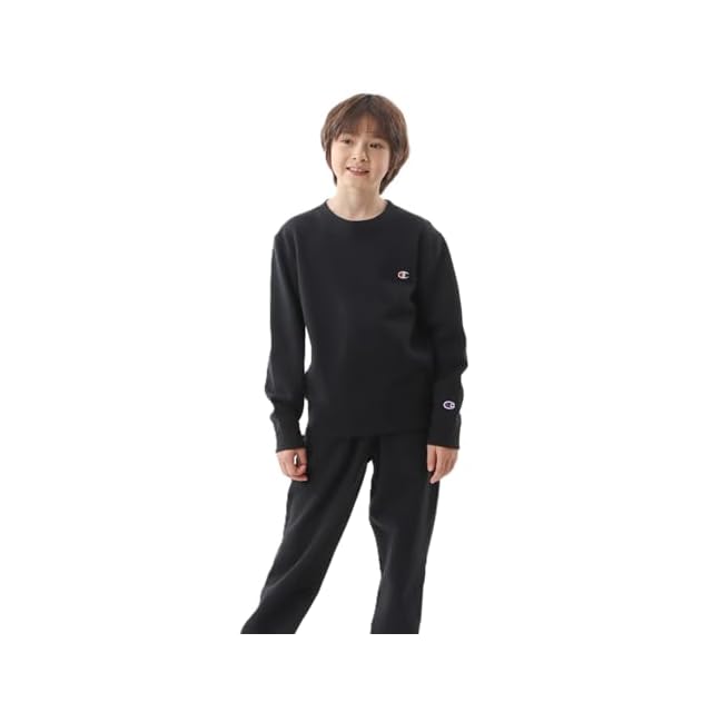[チャンピオン] スウェット キッズ 長袖 綿100% COTTON USA ワンポイントロゴ刺繍 クルーネックスウェットシャツ ベーシック CK-Y001/CK-Y001Z/CK-T001 CK-Y001 ブラック 140 | Trend Design BASE店