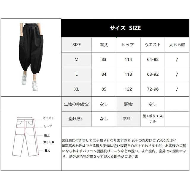 [KumiModa] レディース クロップドパンツ ガウチョパンツ サルエルパンツ ワイドパンツ 9分丈 カジュアル ウエストゴム 無地 おしゃれ 可愛い 大人 体型カバー 通勤 着痩せ ゆったり 美脚 夏 2色 M~XL | Trend Design BASE店