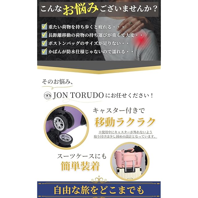 [JON TORUDO] ボストンバッグ 【キャスター付きで&拡張可能】 3WAY 大容量 折りたたみ 旅行 軽量 レディース キャリーバッグ メンズ (ブラック) | Trend Design BASE店