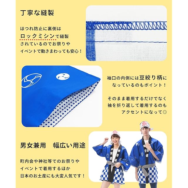 [ニシキ] お祭り法被3点セット 大人用 腰ひも 手ぬぐい 綿100% 男女兼用 祭 衣装(ブルー/L/H1654)
