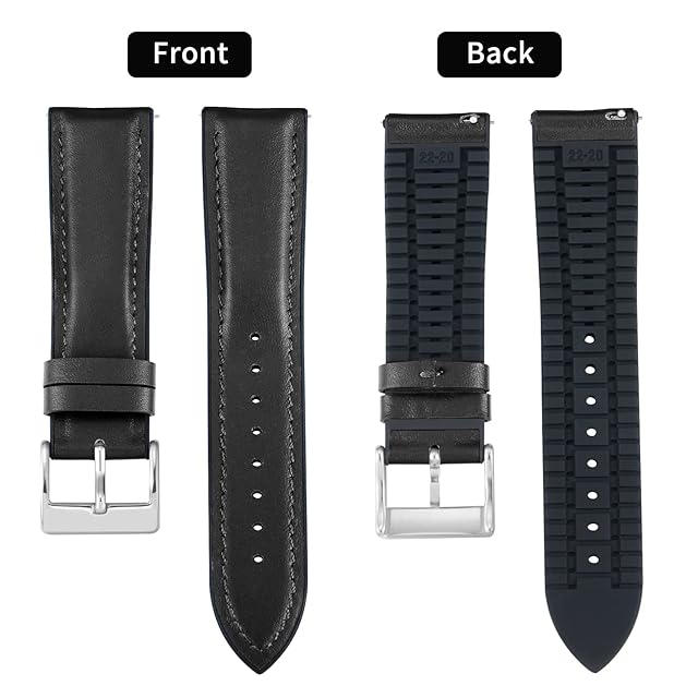 [BINLUN] レザー 時計バンド 内側のラバー 通気性 ハイブリッド クイックリリースウォッチベルト 腕時計ベルト スマートウォッチベルト 男女通用 (ブラック,22mm,シルバーバックル) | Trend Design BASE店