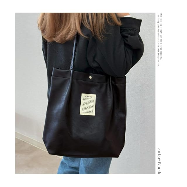 商品名:[ジゼル] トートバッグ a4 大容量 自立 大きめ 肩掛け ビジネス マチあり pc収納 軽量 通勤 通学 タグ付き きれいめ レディース (ブラック)