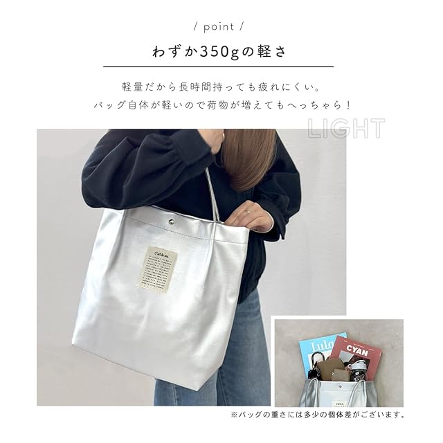 シンプルなのに華やか、大人のためのA4トート ミニマルなデザインと洗練されたカラーで、通勤やお出かけ、ショッピングまで毎日大活躍。軽くて持ちやすいのに、A4ファイルや13インチノートPCも余裕で収納◎ブラック・グレーのシックな定番色から、大人可愛いダークピンク、トレンド感のあるシルバーまで揃えました。さらに、チラッと見える裏地が遊び心も◎
