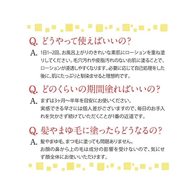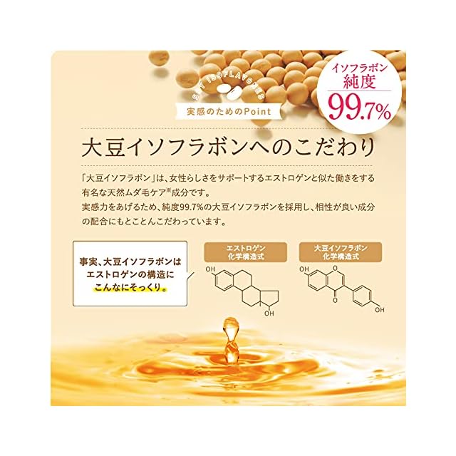 ムダ毛ケアに力を発揮する大豆とアイリス由来の2つのイソフラボンと、それをサポートするパイナップルエキスやパパイン酵素を配合した乳液タイプ。それらの成分をナノ化したオイルが肌内部(角質化)まで届けます。続けることでムダ毛ケアがより楽に。 さらにヒアルロン酸やコラーゲンなどの保湿成分も配合しているのでムダ毛ケアをしながらうるおいとハリのあるお肌に導きます。 乳液タイプなので他にお使いのローションとあわせてご使用いただくことも可能です。また、お顔へのご使用もオススメです。
