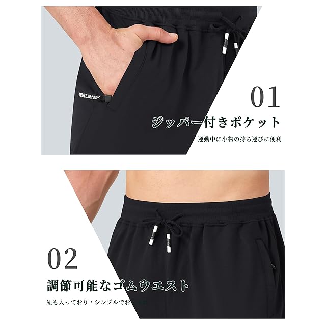 【機能】①通気性:夏でも快適!蒸れない通気性のいいトレーニングパンツです。②ストレッチ性:ストレッチ生地で作ったスポーツウェアで、利便性と機能性の両方を持っています。着心地の良さと柔軟性の両方も兼ね備えています。③軽量性:動きやすさと軽量性を両立したスポーツパンツです。