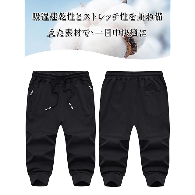 ジョガーパンツ おしゃれ メンズ ボトムス スポーツ ランニング ショートパンツ 七分丈 ジャージ アウトドア ジム スリム ルームウェア 夏 ブラック JP XL