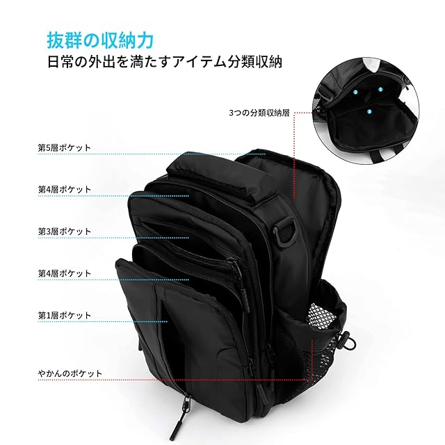 商品名:[CYCOKLY] ボディバッグ ショルダーバッグ 斜めがけバッグ 肩掛けバッグ スポーツバッグ メンズ 人気 自転車 旅行 大容量 防水 軽量 多機能 usb充電ポート(ブラック)