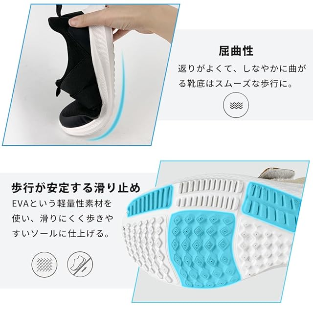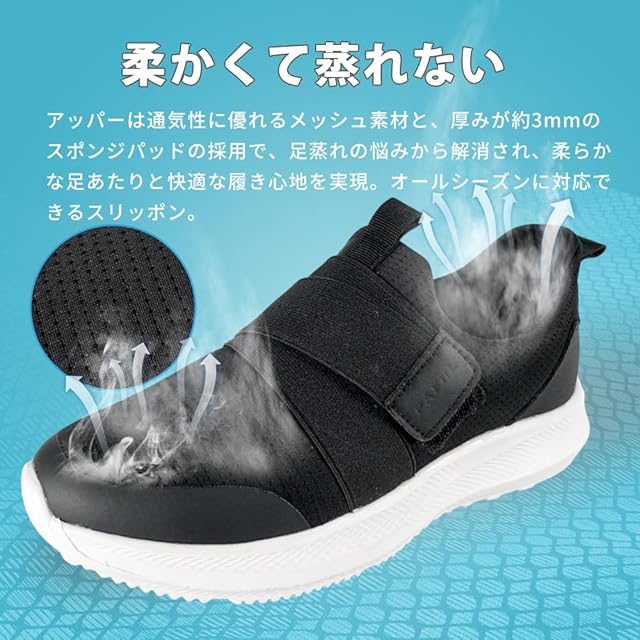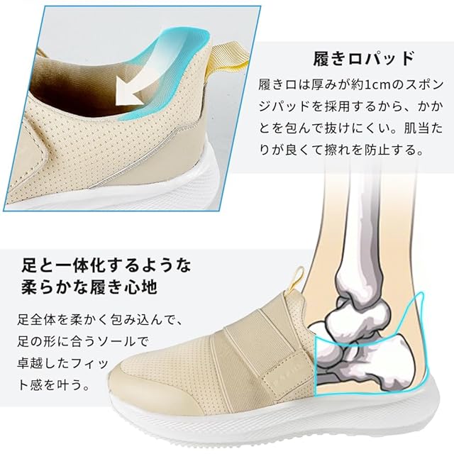 【足と一体化するような柔らかな履き心地】アッパー全体にはスポンジパッドを使用することで、足を柔かく包み込んで、最高な履き心地を実現します。底も柔かい素材だから、しなやかに曲がってスムーズな歩行をサポートします。