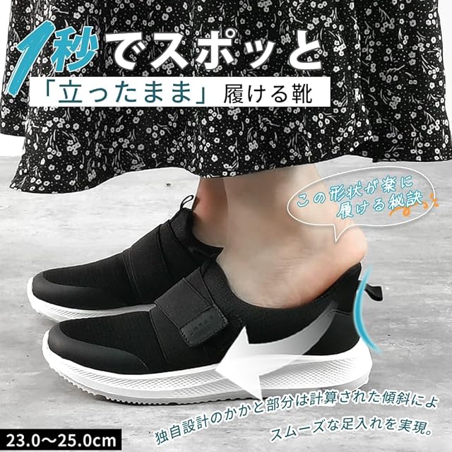 [PAFHL] 立ったまま履ける スニーカー レディース 180g超軽量 手を使わず すッと ウォーキング ランニング 体育館 シューズ 運動靴 紐なし(ブラック,24.0) | Trend Design BASE店