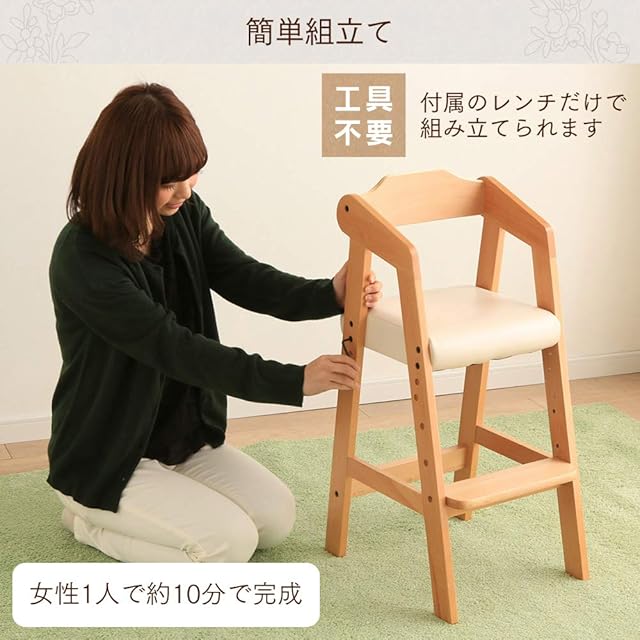 商品名:アイリスプラザ(IRIS PLAZA) キッズチェア 木製椅子 ハイチェア 3段階調節可能 幅35×奥行41×高さ78.5cm
