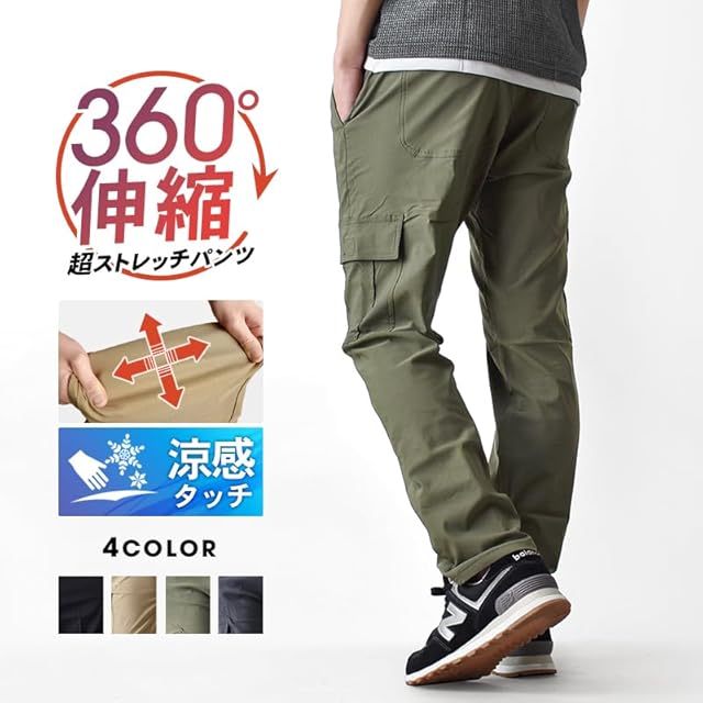 超伸縮素材を使用したカーゴパンツ。身体の動きに合わせ驚くほど伸び縮みする究極のストレッチ性でストレスフリーの穿き心地。通常のストレッチパンツと異なり、このパンツはウエスト部分まで大きく伸び縮みするから、お腹周りを心配する必要もありません!さらに汗ばむ季節に嬉しい接触冷感、UVカット機能も兼ね備えています。大きなカーゴポケットが付いているので、財布やスマートフォンなど必要なアイテムをしっかり収納できます。