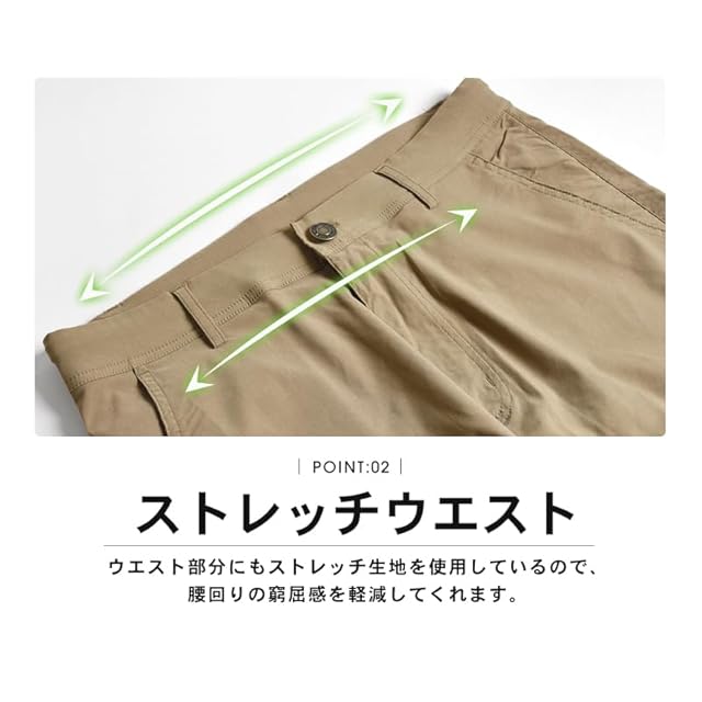 商品名:(アローナ)ARONA DRYストレッチ カーゴパンツ メンズ 超伸縮 接触冷感 UVカット 無地 スマホポケット/Y Aカーキ L