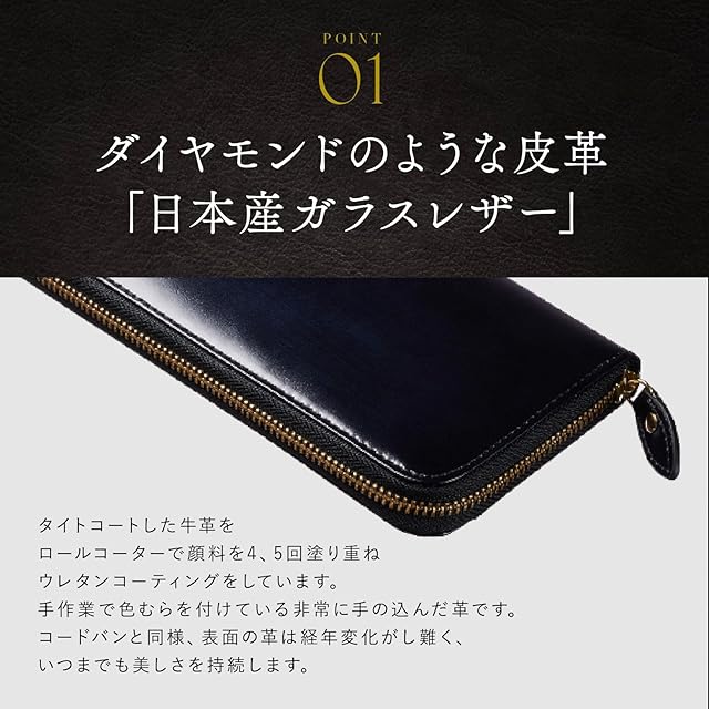 【いつまでも使い続けられる高い品質】耐久性や機能性を持った素材を慎重に選び、丁寧に仕上げました。内装もアンティークガラスレザーと調和する色合いと肌触りの良い合成皮革を使用することで、長年あなたに寄り添う財布にしました。