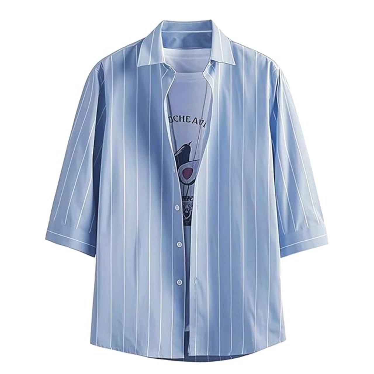 この半袖シャツはポリエステル100%で作られて、肌触わりが柔らかくて、着心地も軽いです。程よい七分袖デザインで、春秋にはtシャツなどと合わせてライトアウターとして使って、夏にはそのまま一枚を着るだけでとして最適します!メイン夏服として人気になる七分袖シャツです。