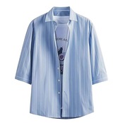 おしゃれなストライプデザインで、春夏のファッションコーディに欠かせないメンズ半袖シャツが登場致します。カジュアルだけでなくビジネスのインナーとしても愛用できるメンズシャツです。夏で頼りになる涼しい薄手の半袖シャツです。<br /> この半袖シャツはポリエステル100%で作られて、肌触わりが柔らかくて、着心地も軽いです。程よい七分袖デザインで、春秋にはtシャツなどと合わせてライトアウターとして使って、夏にはそのまま一枚を着るだけでとして最適します!メイン夏服として人気になる七分袖シャツです。<br /> スッキリしたシルエットとシンプルかつ上品なカラーリングで様々なシーンに活躍するメンズストライプシャツです。美観性と実用性が両立し、羽織るだけで男性の上品な印象を与えてくれます。<br /> 一枚だけでエレガントな男性魅力を演出してくれるメンズ半袖シャツです。カジュアルパンツやチノパン、オーバーサイズのジーンズなどと合わせるとよりスタイリッシュに仕上がります。どなたにも簡単に着こなしていただけるデザインなので、色違いでの購入やプレゼント用にもおすすめのアイテムとなっています。また、小さめサイズから大きいサイズまで揃えているので、色んな体型のお客様に合います。<br /> 【サイズ】:<br /> M着丈:72cmバスト:100cm 袖丈:37cm 肩幅:45cm<br /> L着丈:73cmバスト:104cm 袖丈:38cm 肩幅:46cm<br /> XL着丈:74cmバスト:108cm 袖丈:39cm 肩幅:47cm<br /> 2XL着丈:75cmバスト:112cm 袖丈:40cm 肩幅:48cm<br /> 3XL着丈:76cmバスト:116cm 袖丈:41cm 肩幅:49cm<br /> 【素材】:ポリエステル<br /> 【ご証明いたします】弊社がブランド(ODFMCE)を取って、ご安心、購入していただくようお願い申し上げます。