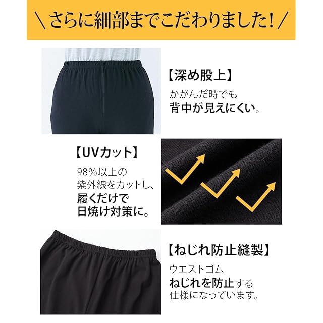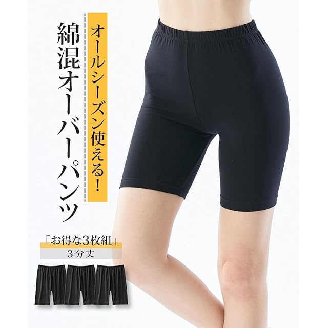 商品名:[ニッセン] オーバーパンツ スパッツ セット 3枚組 綿混 深ばき ハイウエスト 3分丈 大きいサイズ レディース 黒 3L~4L