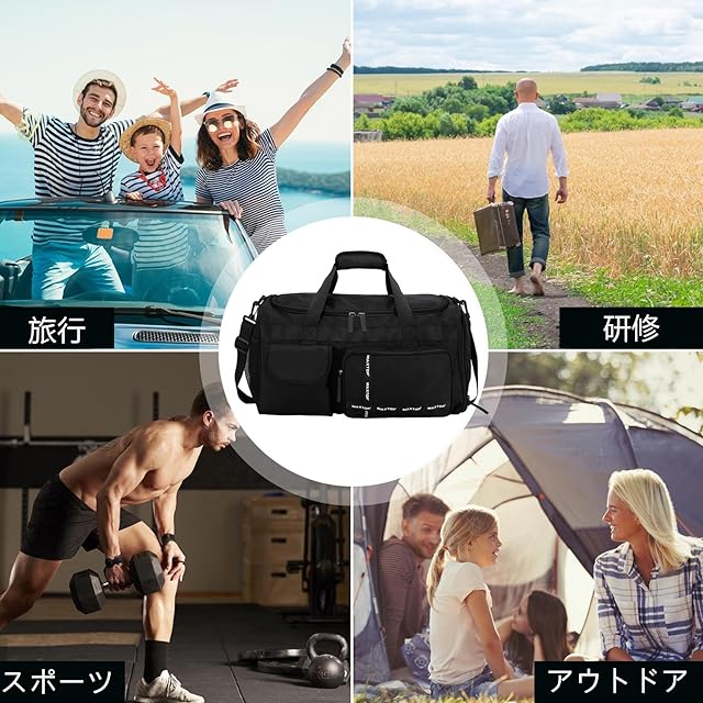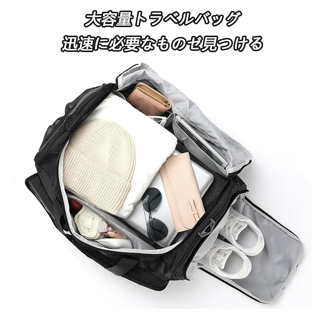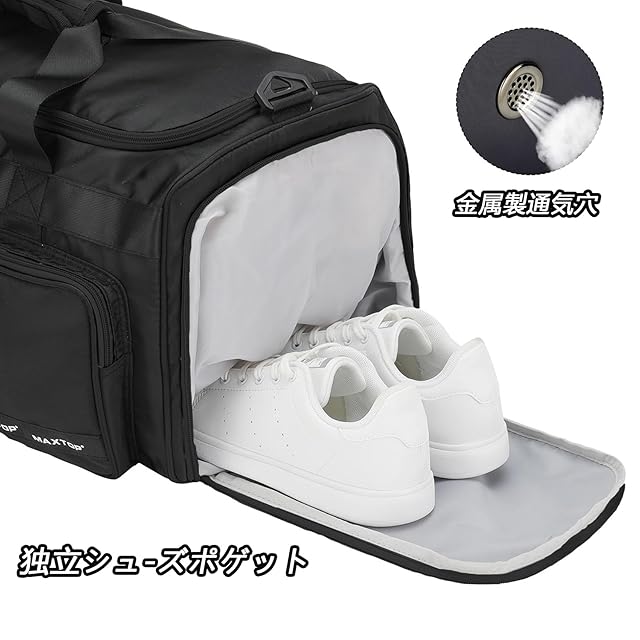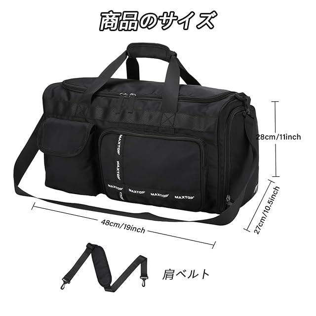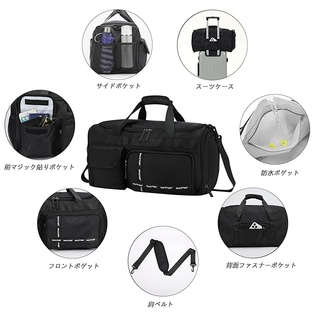 商品名:[MAXTOP]ボストンバッグ ドラムダッフルバッグ 大容量 旅行カバン 防水 軽量 乾湿分離 2泊3日 キャリーオンバッグ ダッフルバッグ スーツケース固定 アウトドア(ブラック)