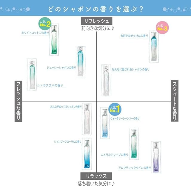 ふとした時に漂うシャンプーの残り香のような、やすらぎあふれる香り 清潔感と無垢さが持つイメージで、あなたのセンスの良さをさり気なく主張できます。