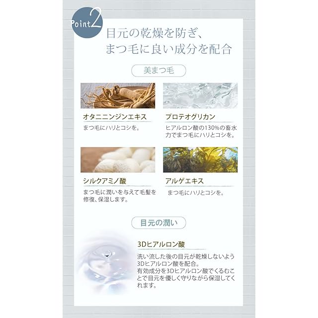 まつエクOK、目に滲みにくい、目元に優しい、高い洗浄力、潤いハリコシを促します