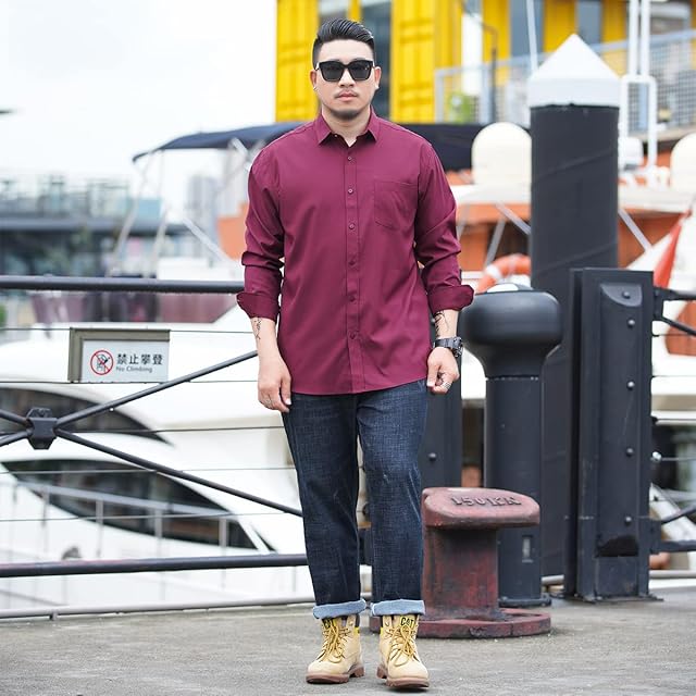 [bluefeel] シャツ メンズ 長袖 大きいサイズ 4XL~8XL シャツ ビジネス カジュアル ゆったり トップス オックスフォード シャツ メンズ オーバーサイズ 透湿 汗染み防止 春夏秋冬服 red-5XL-205 | Trend Design BASE店