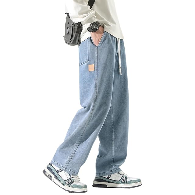 [Olekei] メンズ ズボン ジーンズ ロングパンツ ジーパン ワイドパンツ サルエルパンツ リラックスパンツ ガウチョパンツ 春秋冬服 無地 調整紐 人気 快適 ゆったり 大きいサイズ カジュアル シンプル オシャレ オールシーズン | Trend Design BASE店