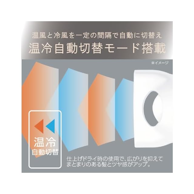 温冷自動切替。仕上げドライ時の使用で、広がりを抑えてまとまりのある髪とツヤ感がUP。