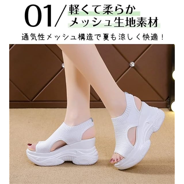 [MaxWant] サンダル 厚底 9cm身長アップ レディース メッシュ 軽量 夏 歩きやすい 通気性 美脚 ファッション カジュアル