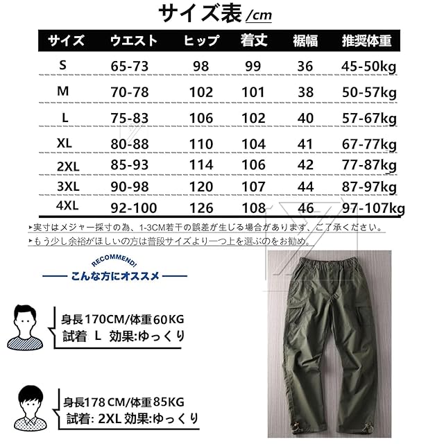 [4色&6サイズ] 幅広いサイズに、カラーも様々取り揃えています。4色展開、コーデの幅が広がります。mから6XLまで5つのサイズを用意してゆったり前開き ズボンです。モデル:身長178㎝/体重55KG/着用サイズXL。