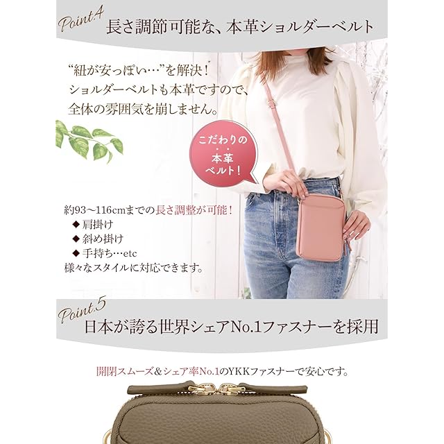 ✅✅✅✅【サイズ調整可能な本革ストラップ】手によく馴染む本革のストラップは、長時間肩掛けしていても違和感がありません。控えめなゴール後の金具がアクセントのストラップは93-116cmの長さで調整が可能で使いやすさ抜群です。