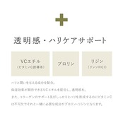 【ハリと透明感を与える成分を配合】保湿効果が期待できるVCエチルを追加配合し、透明感のある肌へ。また、コラーゲンのサポート及びしっかりと肌にハリを形成するのにビタミンCは不可欠でそれと一緒に必要な成分がプロリン・リジンになります。
