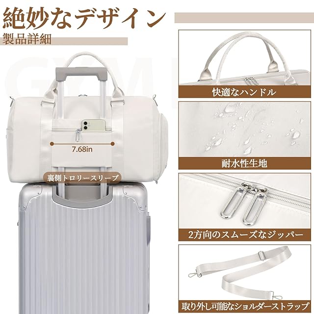 商品名:【GSG】ボストンバッグ 修学旅行 旅行バッグ キャリーオンバッグ 軽量 小さめ (シューズ収納付き/乾湿分離ポケット付き)大容量 4WAY 防水 コンパクト 多機能 ジムバッグ スポーツバッグ 1泊 2泊 (ベージュ)23014
