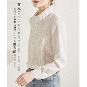 ★エレガントなムードが漂うブラウス、大人しい印象を作り出す大人可愛いレディースシャツが登場しました。ゴージャスなフリル付きで立ち襟風が女性らしい印象を与えるお洒落な1枚。レース切り替えの華やかで可憐な表情が目を惹きます。無地で綺麗なデザインで飽きの来ないベーシックスタイルに。甘すぎない、細部まで美しい大人可愛いレースシャツで気分もきれいにしてみましょう。